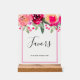 Favours clear acrylic sign features watercolor flowers in shades of pink at the top. CHANGE THE SIZE to fit your event and order with or without a wood stand. MATCHING items in our collection.