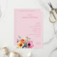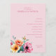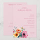 This wedding program features a soft pink background with elegant floral illustrations in peach, yellow, and pink hues at the bottom left corner. The design showcases a balanced layout with ample negative space, creating an inviting and romantic atmosphere. Classic serif typography is used for the main title, while sans-serif fonts provide clear details for the ceremony schedule. Perfect for a formal event, this design exudes warmth and sophistication, making it ideal for celebrating love and commitment.