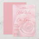 This wedding invitation features a soft, romantic design with a large central rose illustration in shades of pale pink and blush, creating an elegant gradient effect. The colour palette is warm and inviting, using various tones of pink to enhance the sophisticated aesthetic. Elegant script fonts are used for the names and event details, adding a formal touch, while the layout guides the eye smoothly through the content. Perfect for couples seeking a classic and timeless look, this invitation sets the tone for a joyful and anticipatory celebration.