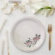 Unique wedding paper plate featuring romantic pink flowers and green leaves.