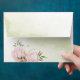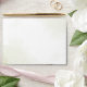 Beautiful pink flowers with some green leaves and gold floral wedding envelope