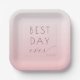 These elegant wedding plates feature a minimalist design with a soft pink gradient background, transitioning from light to darker shades. The text "BEST DAY ever" is prominently displayed in a mix of bold uppercase and flowing cursive fonts, creating a balanced and sophisticated look. The overall style exudes romance and celebration, making it perfect for special occasions like weddings or anniversaries. The clean layout and gentle color palette add a touch of modern elegance, ideal for those who appreciate understated yet stylish decor.
