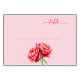 This wedding place card features a minimalist design with a soft pink background, creating an elegant and calming atmosphere. The focal point is two detailed peonies in vibrant shades of pink and coral, adding a touch of romanticism to the layout. A simple red line above the flowers balances the composition, while the cursive "table" text at the top adds sophistication and invites customization. Perfect for weddings or formal events, this card combines modern minimalism with delicate floral beauty, evoking warmth and celebration.