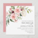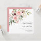 An elegant square wedding invitation set featuring watercolor blush pink roses with greenery.