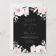 The dramatic black background of the invitation sets the stage for the enchanting top and bottom borders adorned with romantic pink roses. Enhanced by verdant green and delicate pink greenery, as well as leaves, this design captures the essence of nature's beauty and the enduring love shared by the couple.