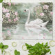Romantic Pink Roses Swan Lake Floral Bridal Shower Tea Towel