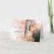 These wedding thank you cards feature a beautifully balanced layout with a soft watercolor background in shades of pink and peach on the left, creating a dreamy, romantic atmosphere. The right side showcases a warm, sunlit photograph of a couple, capturing a genuine moment of joy and celebration. The design includes elegant cursive and simple serif typography for a sophisticated touch, while floral accents subtly enhance the romantic feel. Perfect for expressing gratitude after your special day, these cards blend contemporary style with timeless charm, making them ideal for any wedding celebration.