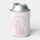 A beautiful can cooler with a romantic wedding design of the framed kissing silhouettes of the bride and groom against a dreamy pink background. Personalise with the couple's names!