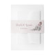 Beautiful botanical wedding invitation belly band featuring romantic pink, white and cinnamon rose/ chianti flowers with green leaves .