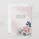 Beautiful botanical wedding response card featuring romantic pink, white and navy blue flowers with green leaves.