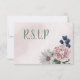 Beautiful botanical wedding response card with meal choice featuring romantic pink, white and navy blue flowers with green leaves.