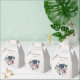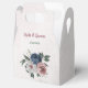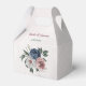 Beautiful botanical wedding favour box featuring romantic pink, white and navy blue flowers with green leaves.