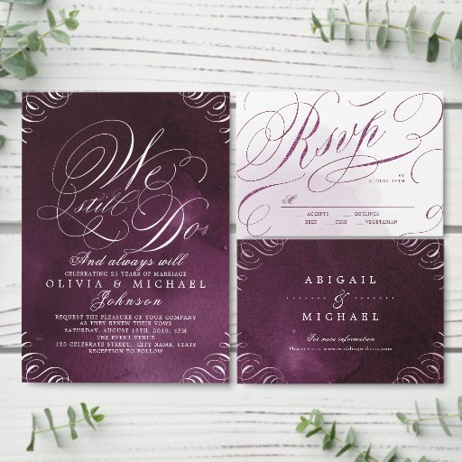 Romantic plum wedding calligraphy thank you