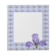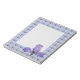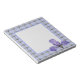 This notepad features a design of monochromatic irises (mostly white) against a soft purple background with a vivid purple iris in the bottom right corner. The writing area of the pad is a very light purplish grey.