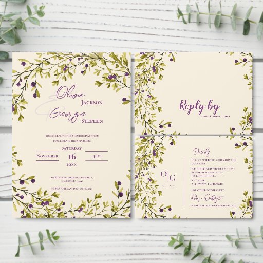 Rustic Purple Berry & Greenery Wedding CollectionDesigned by Mypaperlove Designs
