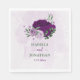 Beautiful romantic paper napkin featuring purple flowers and some green leaves .