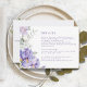 Whispers of enchantment grace this lavender wedding enclosure card. Soft purple and pink irises, along with white peonies and a sprinkling of wildflowers, create a romantic scene perfect for your boho, country, or garden wedding.