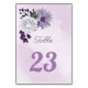 Romantic purple & white floral greenery table number