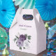 Beautiful botanical wedding favour box featuring romantic purple lavender and white flowers with green leaves
