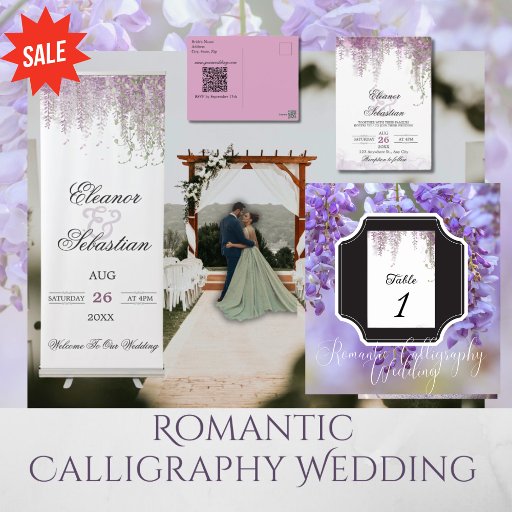 Romantic Calligraphy Wisteria Purple Wedding SuiteDesigned by Suzanne Hein