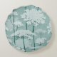 Soft, round decorative pillow works beautifully with this Queen Annes Lace design by artist, L Diane Johnson, known for her garden paintings—now on home decor. Pale muted mint background with white flowers and blue-green stems. See coordinating items featuring this design or home, office, vacation home or as a gift!
