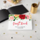 This fun and whimsical birthday party guest book features watercolor red, pink and orange roses with foliage on a gold geometric frame. The text combines handwritten script and serif fonts for a stylish and modern look. This is perfect for a spring or summer rustic birthday party.