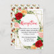 This fun and whimsical wedding reception enclosure card features watercolor red, pink and orange roses with foliage on a gold geometric frame. The text combines handwritten script and serif fonts for a stylish and modern look. This is perfect for a spring or summer rustic wedding.