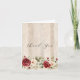 Romantic Red Cream Roses Faux Wood Wedding Thank You