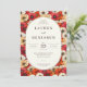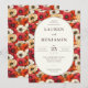 This elegant wedding invitation features a central oval frame with an off-white background, surrounded by a vibrant floral pattern of poppies in shades of red, orange, and cream. The design showcases a romantic and sophisticated style, enhanced by smooth digital illustrations that create a stylized yet realistic appearance. Classic serif typography is used throughout, ensuring clarity and a timeless aesthetic, while the warm color palette adds a lively touch to the overall composition. Perfect for formal occasions, this invitation captures the beauty of nature and sets the tone for a memorable celebration.