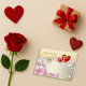 Soft beige tones meet vivid red hearts and golden accents in this romantic Valentine card. A delicate ribbon and floral motif evoke timeless elegance. Inspired by classic love letters, it’s perfect for heartfelt gifting. Share your affection with a keepsake they’ll treasure