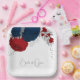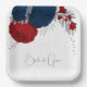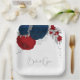 Romantic dark red & navy blue flowers with silver leaves botanical wedding paper plate.