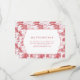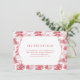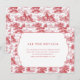 This wedding enclosure card features a charming pastoral theme with a repeating pattern of idyllic rural scenes in soft red hues against a crisp white background. The central label, framed by an ornate border, highlights the main details in bold serif typography, guiding guests to visit a customisable website for more information. The vintage engraving style adds a touch of nostalgia and elegance, perfect for setting a warm and traditional tone for your special day. Ideal for weddings, this design balances visual appeal with clarity, ensuring your event details are both inviting and easily accessible.