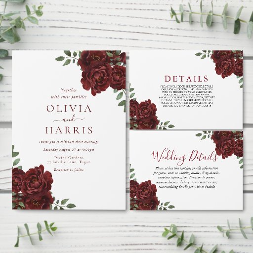 Romantic Red Rose Burgundy Elegant Wedding Invitation