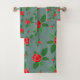 Romantic Red Roses Floral Pattern Green Leaves Bat Bath Towel Set