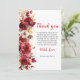 Rustic wedding thankyou card with watercolor floral roses flowers and greenery. Perfect for a spring or summer wedding. The words can be changed to suit your own details or requirements