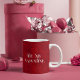 The romantic red roses pattern with gold stripes accent and a custom monogram in white make this design the perfect Valentine's Day gift.