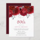 Romantic Red Roses Silver 50th Birthday Invitation