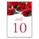 Beautiful and elegant table card in red and white with red roses.