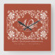 Romantic Red Rust Decade 40 Anniversary Floral Square Wall Clock