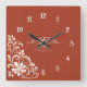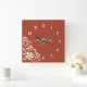 The "Mr & Mrs" wall clock design features a beautiful watercolor artwork of a white floral frame on a warm, earthy red background. The couple's last name and special date can be easily customised. This personalizable wall clock makes a wonderful wedding gift as it serves as a sentimental reminder of the couple's time together and is a practical, long-lasting addition to their new home.