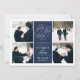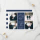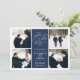 Simple and elegant, our Romantic Request photo save the date card features four of your favourite engagement photos arranged in a square format, with your wedding details in the centre in white on navy blue. "Save the date" appears in white script typography with a chic heart worked into the design. Add your wedding details, including names, wedding date, and location. Cards reverse to modern horizontal stripes in navy and white, with an additional text field for your wedding website or additional information.