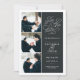 Simple and elegant, our Romantic Request photo save the date card features three of your favourite engagement photos aligned along the left side, with your wedding details on the right in white on inky off-black. "Save the date" appears in white script typography with a chic heart worked into the design. Add your wedding details, including names, wedding date, and location. Cards reverse to modern horizontal stripes in charcoal and white, with an additional text field for your wedding website or additional information..