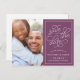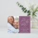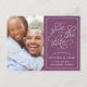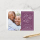 Modern photo save the date postcard in rich plum purple and white features your favourite engagement photo on the left side, with your wedding details on the right. "Save the date" appears in white script typography with a chic heart worked into the design, against a rich violet background. Personalise with your wedding details, including names, wedding date and location, and add additional details to the back, including your wedding website and return address.