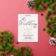 This elegant all-in-one wedding invitation showcases a soft blush background with luxurious rose gold foil pressed typography. Delicate swirls and whimsical flourishes add a romantic touch to the modern classic design. The back of the card includes space for wedding details and RSVP information, making it both stylish and convenient.