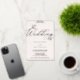 This elegant wedding invitation features a soft blush frame adorned with luxurious rose gold foil. The modern classic design includes whimsical swirls, flourishes, and hand-lettered rose gold foil typography, all framed in a formal foil border—perfect for a simple yet sophisticated celebration.