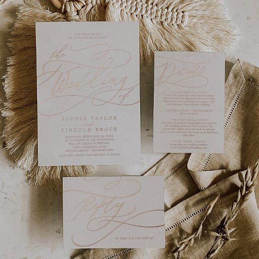 Romantic Rose Gold Foil Wedding CollectionDesigned by Miriam Kokolo