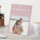 Romantic Rose Pink Couple Photo Wedding Welcome Pedestal Sign