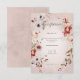This wedding reception card design features a beautiful soft blush pink distressed background with a delicate pink, maroon, white, purple, and green floral sprays. It's romantic with a touch of vintage. Created by Simply Farmhouse Press, it's part of the Romantic Rose Pink Floral Wedding Suite of cards.