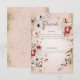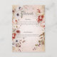 This wedding details card design features a beautiful soft blush pink and antique gold distressed background with a delicate pink, maroon, white, purple, and green floral sprays. It's romantic with a touch of vintage. Created by Simply Farmhouse Press, it's part of the Romantic Rose Pink Gold Floral Wedding Suite of cards.