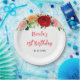 This beautiful and elegant plate features watercolor red, pink and orange roses with foliage. The text combines handwritten script and serif fonts for a stylish and modern look. This is perfect for a summer rustic birthday.